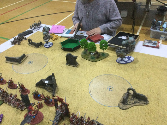 List felt good in practice games, even if I lost both games with the version of the list above! Going into the event I wanted an improvement in play more than results a "stronger" 3/2 than the one I had achieved at LGT - still plenty to learn but wanted to avoid any losses where I felt I had control at one stage and make the defeats closer. Basic plan was simple - threaten early charges with the Skullcrushers, move up aggressively with them then let the Bloodletters charge whatever crashed into them.