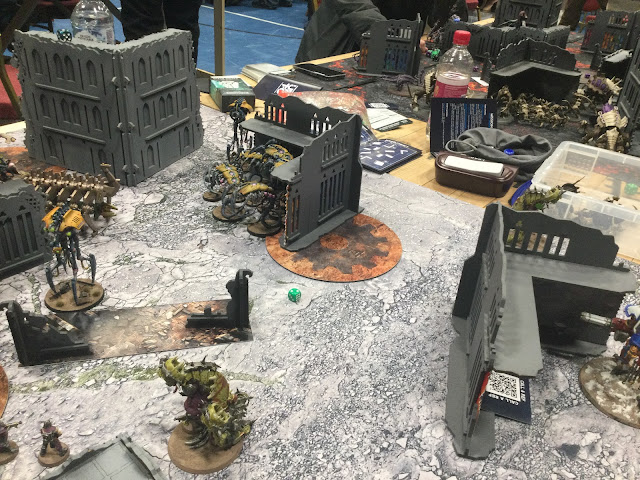 So with CSM out the picture fell back on Death Guard. Had been running them as my second faction anyway with some success and having a combat focused army went well with our team - Byron on Daemons and Denis on Necrons will be familiar name/faction pairings to regular readers of the blog whilst Hristo joined with Nids and pairings expertise and Sam was either welcomed on the team as Captain with as the current top ranked UKTC CSM player or a reluctantly tolerated as dirty faction stealing thieving bastard depending on your point of view (it did feel weird not being the CSM player on the team for a change.) To briefly summarise their lists - Byron with Excess Daemons, Denis on Shatterstar, Hristo on Vanguard invasion lots of big shooty monster/gaunts and Sam on Vetrans of Long War CSM.