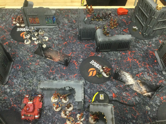 As a slight aside I forgot my normal tablet to take pictures for day one, so there's a few less than normal in less quality image for first 3 games. If it this angers you and makes you scream for blood A - Scroll down to game 4, B - Your probably excited/distraught about the new World Eater book.